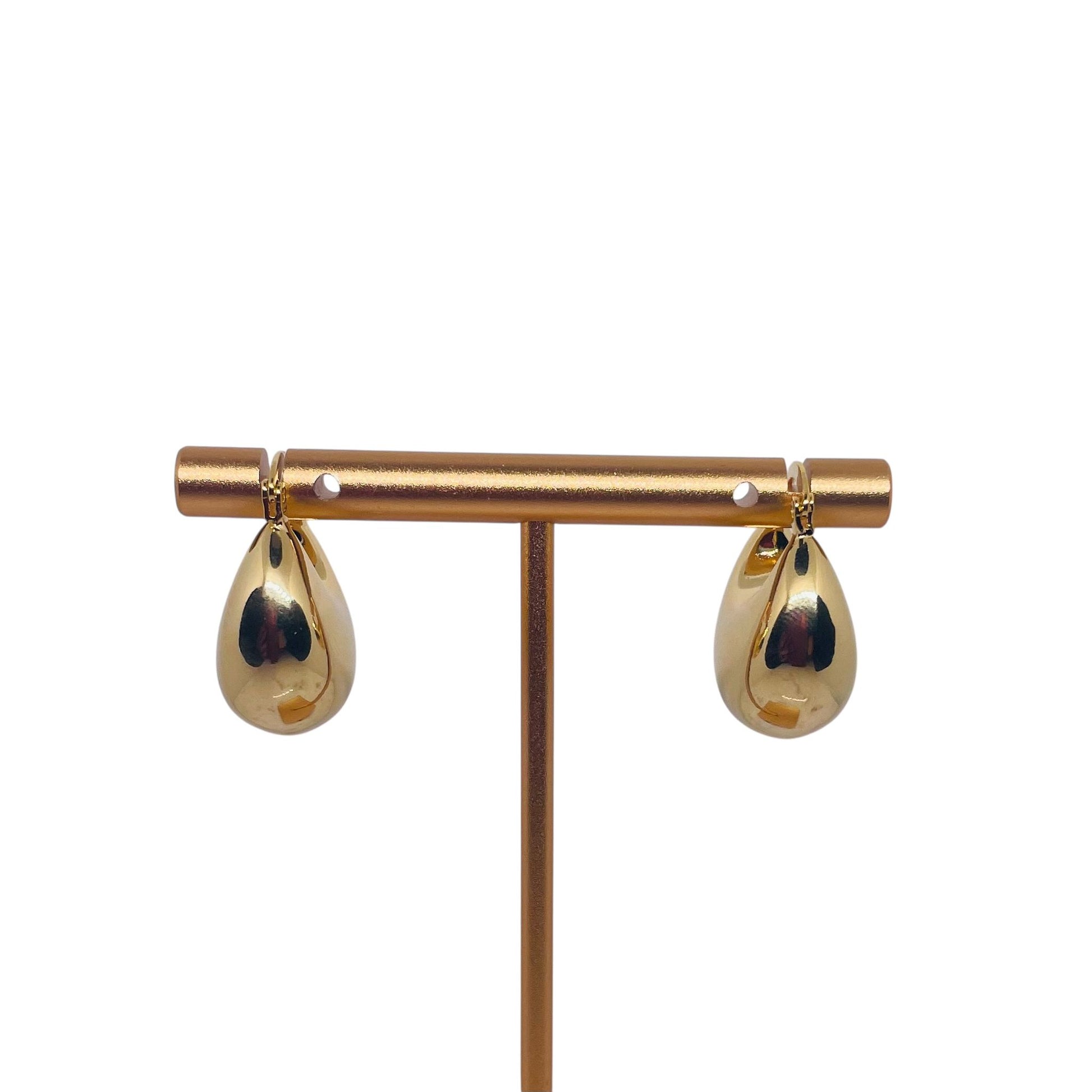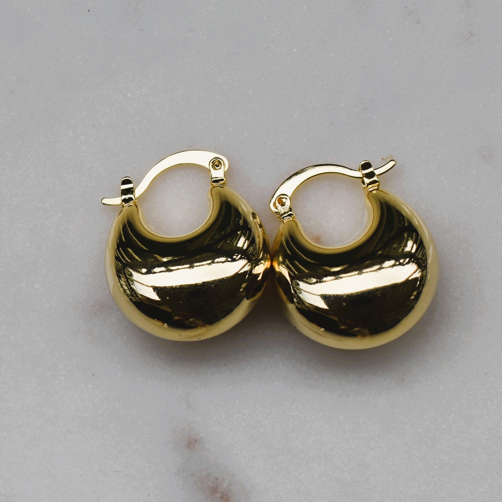 These classic hoop earrings feature a bold dome design with a smooth, high-polish gold finish that reflects light beautifully. Their sleek and timeless look makes them perfect for both everyday wear and special occasions. Lightweight and comfortable, they add a touch of elegance and sophistication to any outfit.