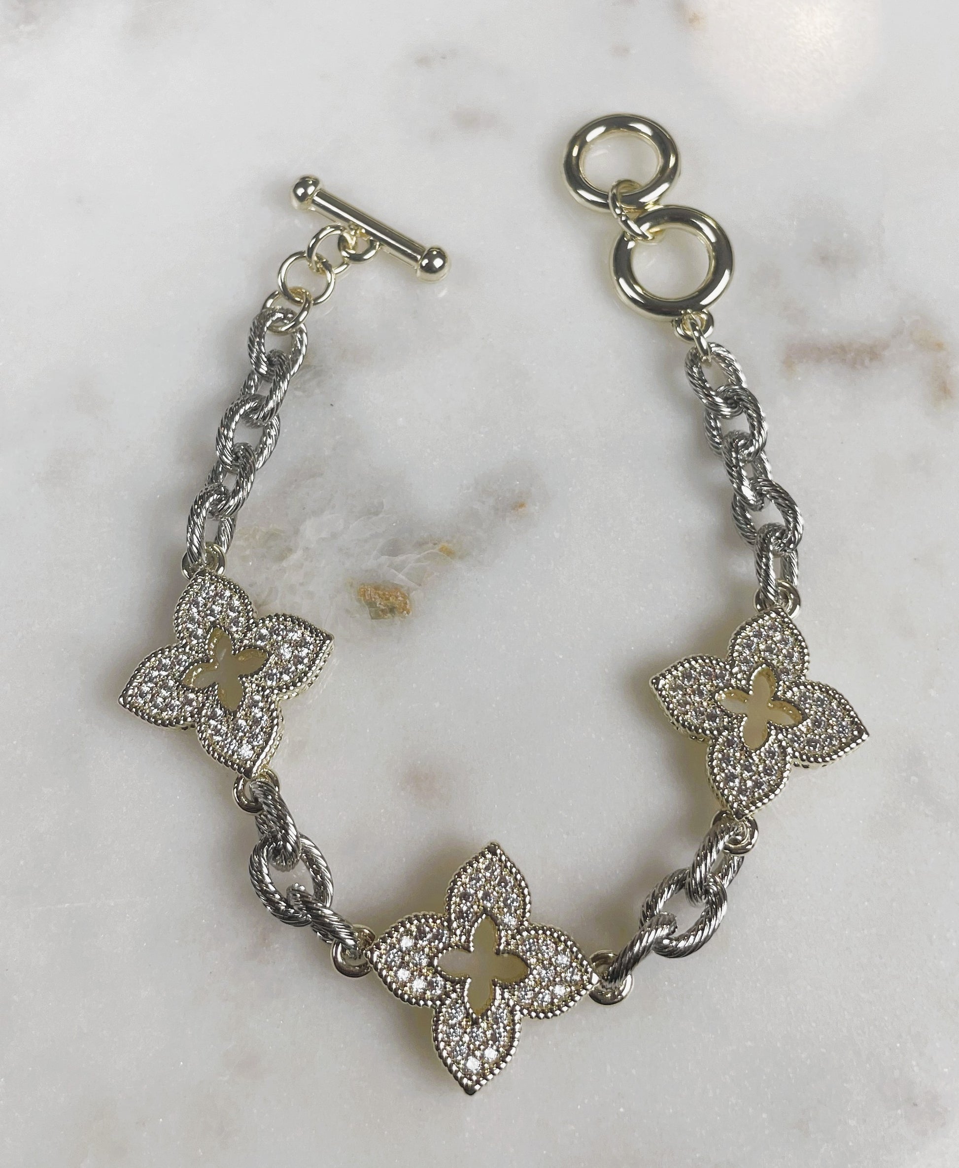 Two-Tone Clover Charm Bracelet
